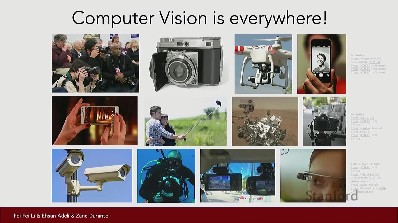 This video introduces computer vision and deep learning, exploring their intersection and interdisciplinary nature. Professor Fei-Fei Li discusses the history of vision from the Cambrian explosion to modern AI applications.